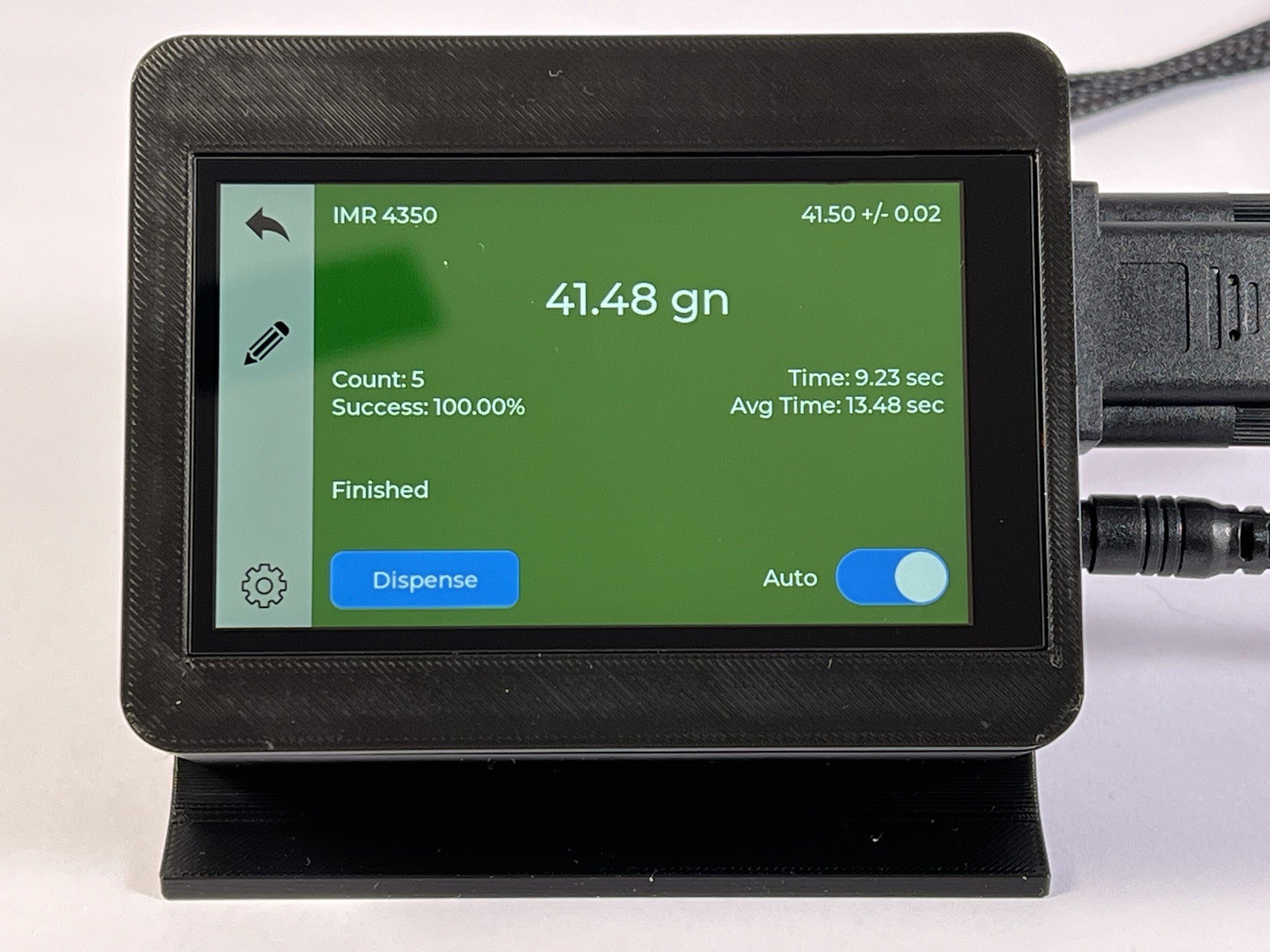 12/18/2025: I am development complete at this time. Currently I am evaluating a range of powders to verify dispenser compatibility. Powders include Vihtavuori N570, IMR 4350, Hodgdon Varget, Hodgdon Retumbo, CFE Pistol, CFE 223, Hodgdon Titegroup, Hodgdon Titewad
